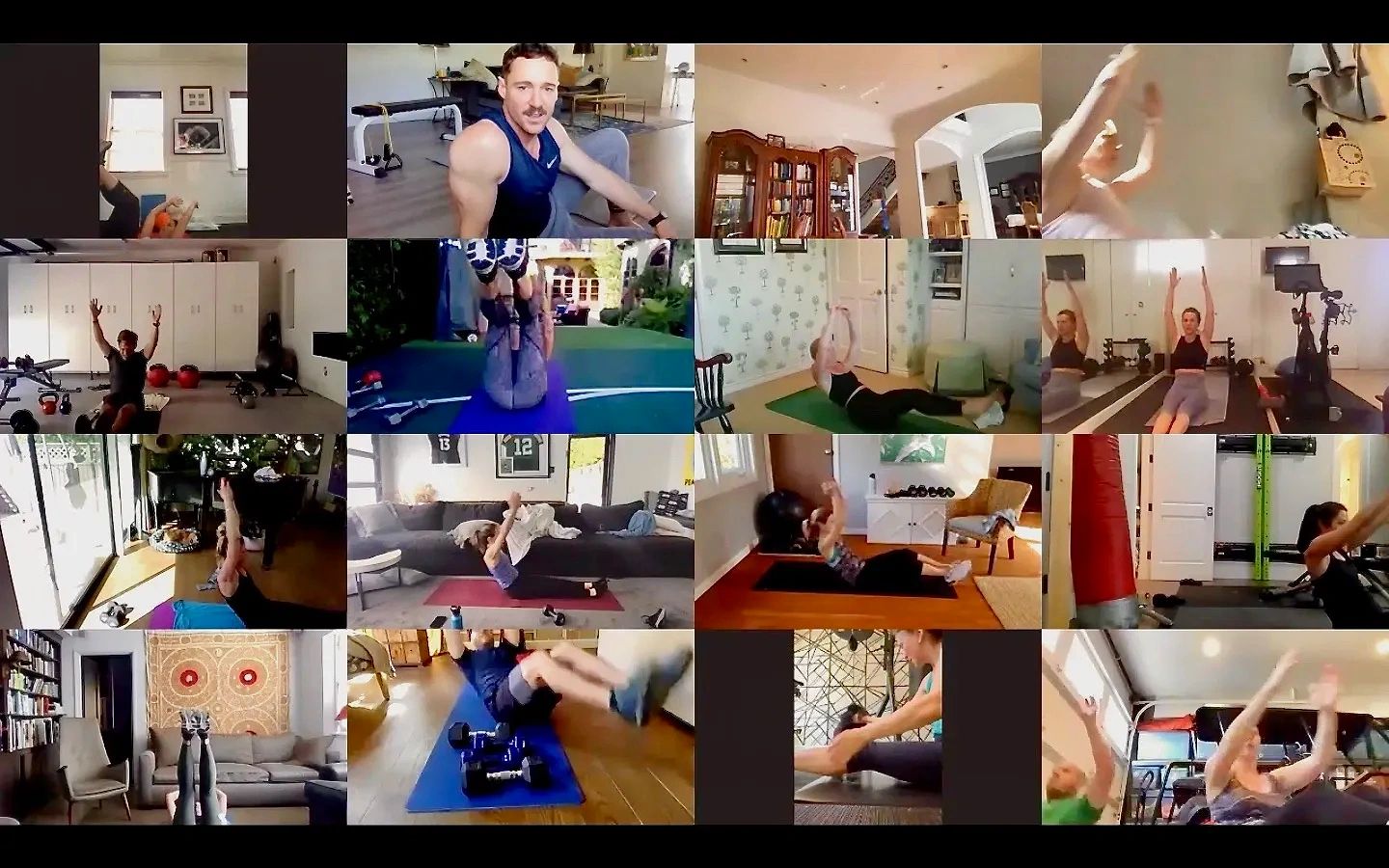 Grab a couple dumbbells or a resistance band, and get ready to sweat and laugh with friends!